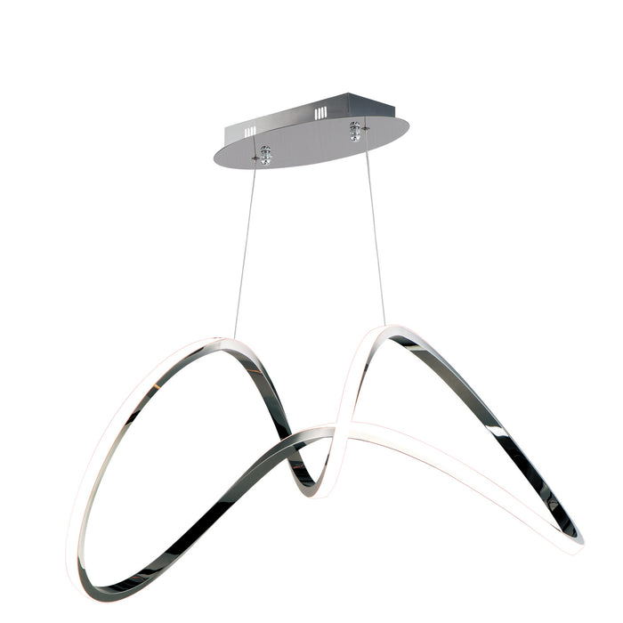 Sweeping lines curve and curl in a continuous motion, finished in a rich Brushed Champagne or Black Chrome. Not just a lighting fixture but a sculptural work of art. Gentle illumination moves in all directions for a dramatic lighting effect.