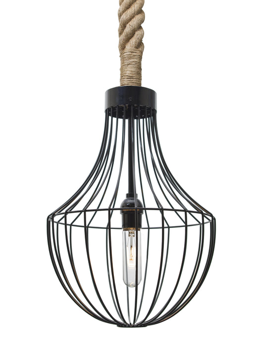 Our industrial styled Sultana Flare composed of a black aluminum bracket and artistic display of radiused woven metal rods, offers a look that will easily merge into the recent urban decorating trend. The exposed hardware is designed to be celebrated, and creates a light sculpture as it gracefully plays with the focused downlight. The Rope pendant fixture is equipped with a 6` natural hemp rope, 2`` in diameter, and an low profile flat monopoint canopy. These stylish and functional luminaries are offered in a beautiful black finish.