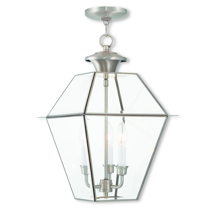 Three Light Outdoor Pendant from the Westover collection in Brushed Nickel finish