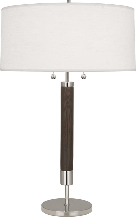 Two Light Table Lamp from the Dexter collection in Polished Nickel w/ Dark Walnuted Wood Column finish