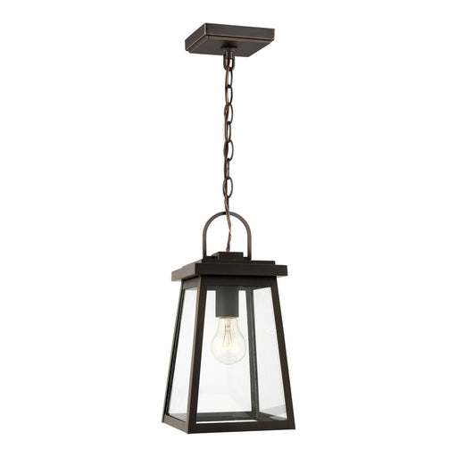 One Light Outdoor Pendant from the Nyack collection in Bronze with Antique Brass Cluser finish