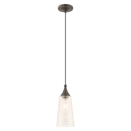 One Light Pendant from the Eaves collection in Copper Brushed Brass / Clear Ribbed Glass finish