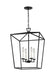 The Dianna contemporary lantern pendant by Generation Lighting is offered in the Midnight Black, Satin Bronze or Brushed Nickel finish. The dark and transitional open frame encompass generously proportioned candelabra style bulbs. This updated silhouette brings a modern element to your cozy ambient lighting design.