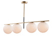 Inspired by both Mid Century Modern and Scandinavian Contemporary this collection spans a large breadth of today`s interior design. Straight tubing finished in Satin Brass supports hand blown Satin White cased glass globes. Black accents of metal and Black marble add dramatic detail and upscale appeal.