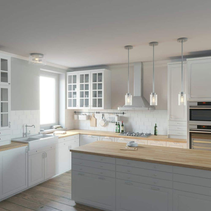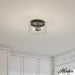 • Fits close to the ceiling to optimize headspace and provide stylish lighting.