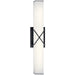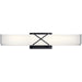 The 22in. LED bath light of the Trinsic(TM) collection is an intricate, yet subtle aesthetic to complement any modern bath with Satin Etched White glass and a unique criss-cross design in a Matte Black finish.