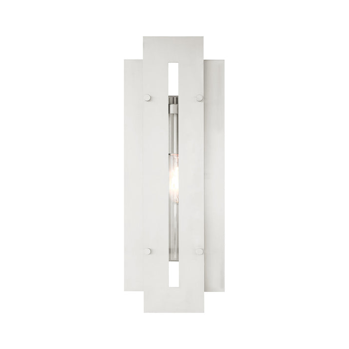 One Light Outdoor Wall Lantern from the Utrecht collection in Brushed Nickel Accents finish
