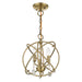The delicate dangling crystals of the Aria collection adds an eclectic counterpoint to the luxurious orb. The three-arm light cluster nestled within orbiting rings of this petite light features faceted clear teardrop crystals. Use multiples of these fixtures over your kitchen island or convert this to a semi flush mount for your hallway or bathroom. With its easy installation and low upkeep requirements, this light will not disappoint. It is shown in an antique brass finish.