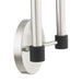 Simplicity and attention to detail are the key elements of the Karlstad collection. The dimensional form, exposed bulbs and two-tone finishes add a playful mood to a contemporary or urban interior. This ADA double light sconce design gives a new face to a hallway, dining area or a bathroom vanity. It is shown in a brushed nickel finish with black finish accents.