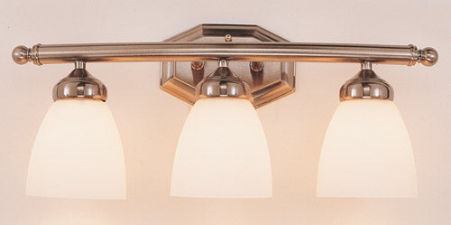 Three Light Bath from the Greenbrier collection in Brushed Nickel finish