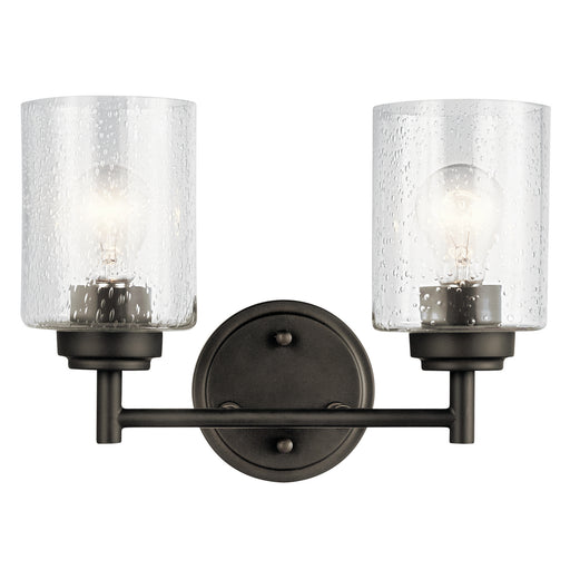 SKU 45885OZOriginal price $95.97 - Original price $95.97Original price$95.97$95.97 - $95.97Current price $95.97The modern Winslow 2-light 12.75in. bath light in an Olde Bronze finish with Clear Seeded glass shade pair beautifully with the linear arms, bringi...