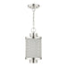 The Nottingham outdoor collection has a clean, crisp look and contemporary appeal. This single light stainless steel medium pendant lantern has a brushed nickel finish and features a sleek stainless steel mesh shade with satin opal white glass.