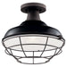 The caged design of the Pier 12 inch 1 light outdoor convertible pendant/flush mount in Black offers the vintage outdoorsy look, while the bright white interior enhances and reflects the light for essential nighttime illumination.
