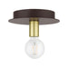 Minimal and versatile describes the Hillview collection. Two-tone finishes grace this group creating a stylish and sophisticated appearance. This one-light flush mount ceiling fixture will look great in a traditional, transitional, modern or contemporary bedroom, hallway, bathroom and kitchen. It is shown in a bronze finish with satin brass finish accents.