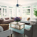 The Hartland indoor ceiling fan’s clear seeded glass and included Edison LED light bulbs create a stunning look in small, casual rooms. The Noble Bronze and Matte Silver finishes complement other fixtures in farmhouse, casual spaces while the Indigo Blue finish adds a subtle pop of color. Create a cohesive look in your space by pairing the Hartland ceiling fan with the coordinating light fixtures in its collection.