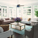 Industrial and rustic design come together on the Mill Valley with details including the vintage-looking rivets securing the blades, coin-edge thumbscrews, and barn-style open hood light. Style meets performance with the Mill Valley’s white hood reflector that maximizes light from a vintage-style energy-efficient LED Edison bulb. Perfect for areas exposed to moisture and humidity, this damp-rated fan completes the look of your casual farmhouse living spaces or patios. The Mill Valley Collection is available in a variety of finishes and mounting options to customize the look of your room's rustic home decor while maintaining a consistent style throughout your home.