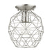 The Geometrix collection adds a stylish touch of contemporary inspiration featuring a classic geometric cage design. This brushed nickel finish single-light flush mount will fit comfortably almost into any room d?cor. With superb craftsmanship and affordable price, this fixture is sure to tastefully enhance your lifestyle.
