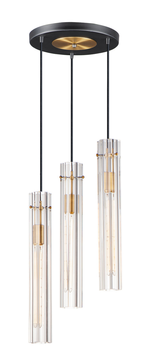 Three Light Chandelier from the Flambeau collection in Black / Antique Brass finish