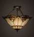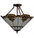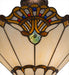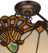 Oceanic Iridescent Blue/Green Jeweled nautical shells, surrounded by Blue and Red jewels, highlight an intricate Art Nouveau motif in Amber and Clear Ripple glass, accented with iridescent Amber formed jewels on Bone Beige. A Multicolored ringlet motif featured on bottom is accented with Root Beer glass oval jewels while Amber Iridescent glass diamond shaped jewels accent the top. The shade was handcrafted using the famous Meyda Tiffany copperfoil construction process and complemented with hardware finished in Mahogany Bronze. The pendant is UL and cUL listed.