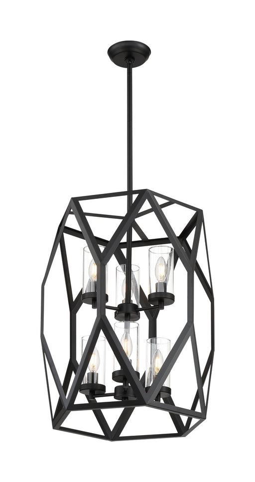 Six Light Pendant from the Augusta collection in Black / Wood finish