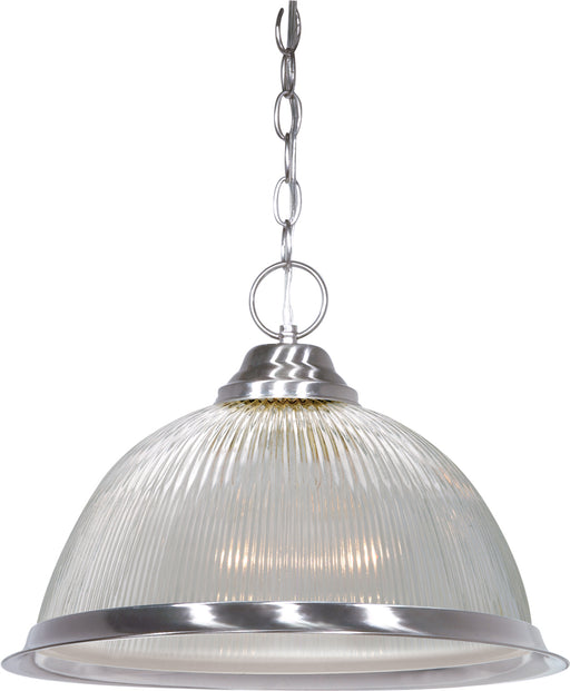 SKU SF76-690Original price $109.99 - Original price $109.99Original price$109.99$109.99 - $109.99Current price $109.991 Light - 15`` - Pendant - Frosted Prismatic DomeWidth: 15.00"Height: 10.50"Length: 15.00"Weight: 14.19 lbBulbs: 1 x 100.00W A19 Medium