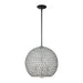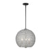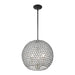 Cassandra features a dazzling array of K9 faceted crystal gems suspended within a modern frame. Light artfully reflects and refracts through these elements to provide a dramatic focal point to any room. This three-light globe crystal pendant will add an unmistakable touch of elegance to your dining room, kitchen or a bedroom. It is shown in a black finish with a brushed nickel finish cluster.