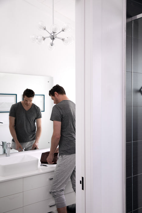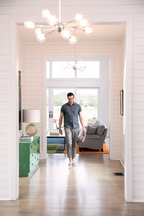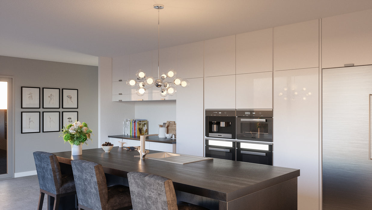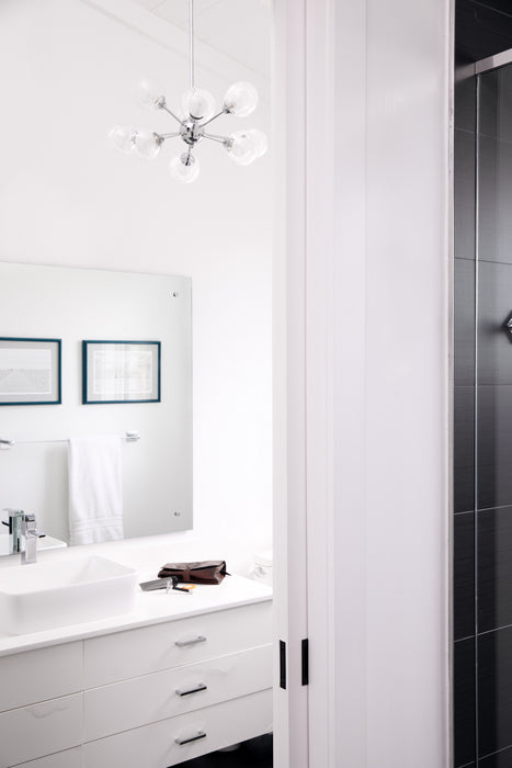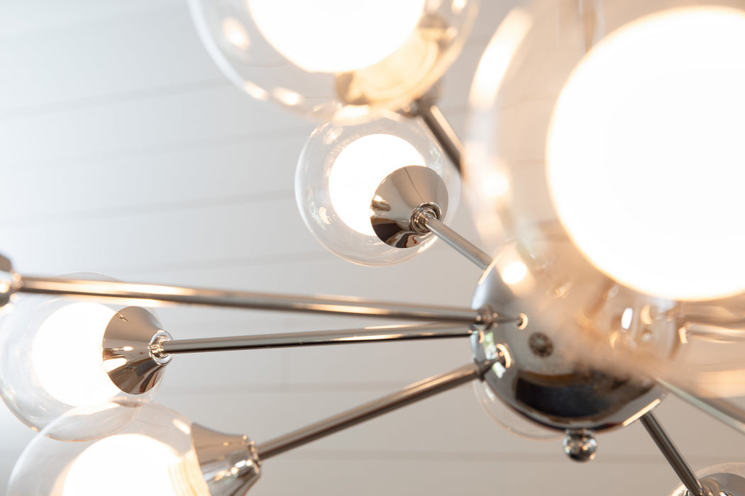 Find yourself mesmerized by the vintage beauty of the Spellbound, a stunning member of Platinum by Quoizel. Inspired by the sputnik designs of decades past, this collection is truly retro reimagined. Spheres of shimmering ice glass are encased in outer shades of clear glass, resulting in a glittering display of light. The polished chrome arms and sockets adds a contemporary edge to finish the look.