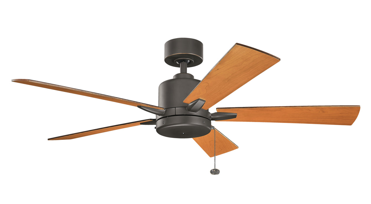 This Bowen 52in. ceiling fan in Olde Bronze features clean, contemporary styling and has a pull chain on/off control that makes usage a breeze.