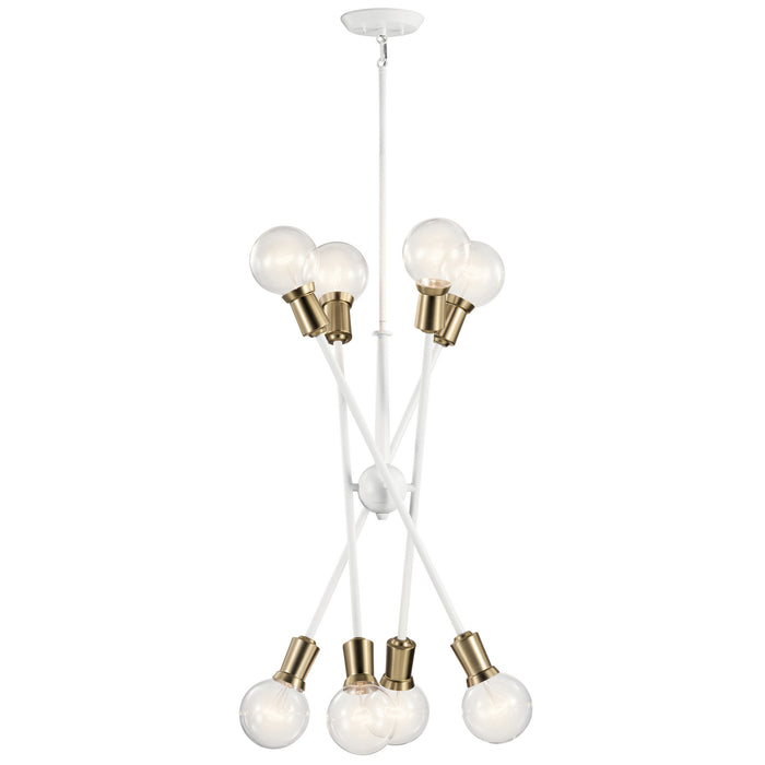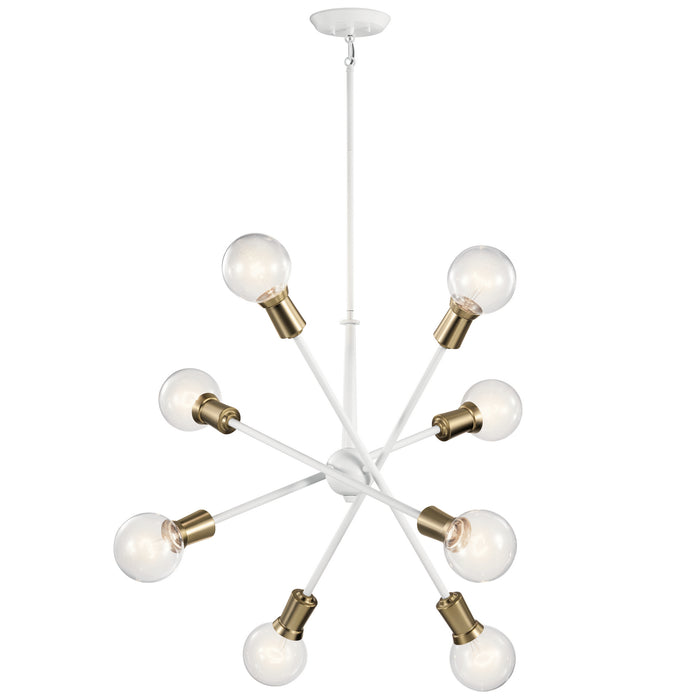The Armstrong 26in. 8 light adjustable arm chandelier features a in.sputnikin. design with adjustable White finish arms, allowing you to customize the light horizontally or vertically for just the right look. The Armstrong chandelier works in contemporary or mid century modern environments.