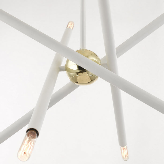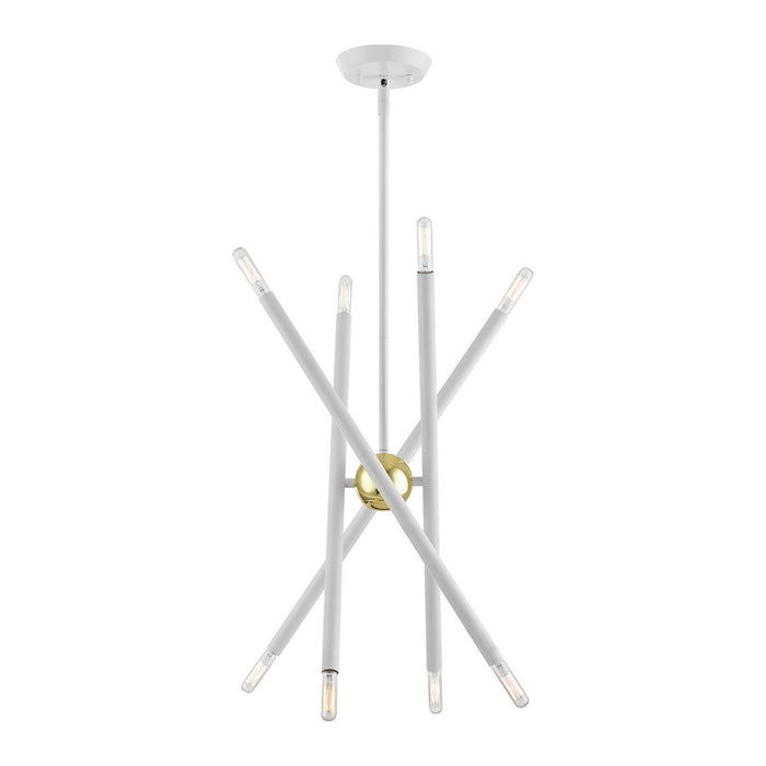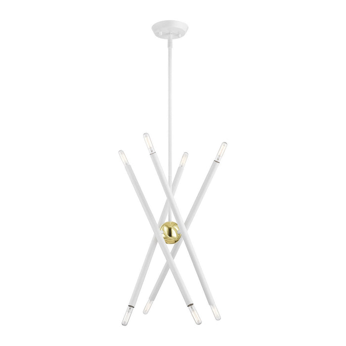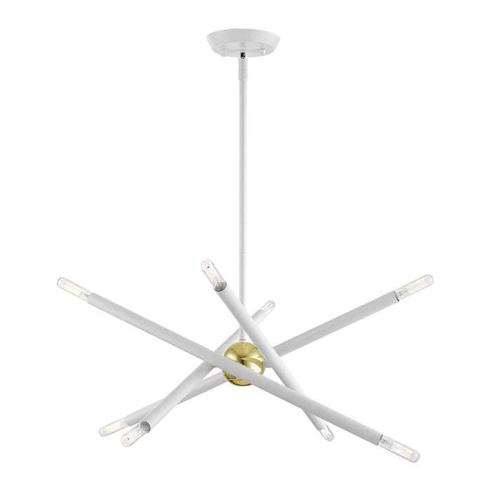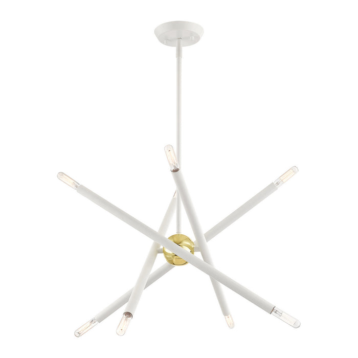 Eight Light Chandelier from the Soho collection in White with Polished Brass Accents finish