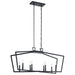 The open cage style of Abbotswell linear chandelier makes maximum impact with minimal lines. Intersecting pentagons in a rich Matte Black finish create a look that works in a variety of decors: updated traditional, transitional or modern farmhouse.