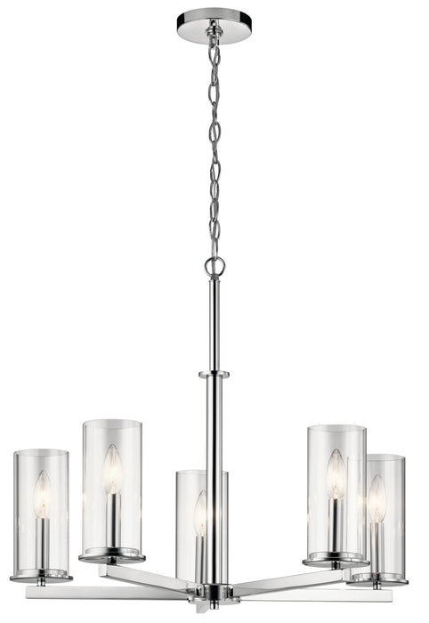 Streamlined and simple, This Crosby 5 light chandelier in Chrome delivers clean lines for a contemporary style. The clear glass shades enhance this minimalistic design.
