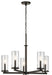 Streamlined and simple, This Crosby 5 light chandelier in Olde Bronze delivers clean lines for a contemporary style. The clear glass shades enhance this minimalistic design.