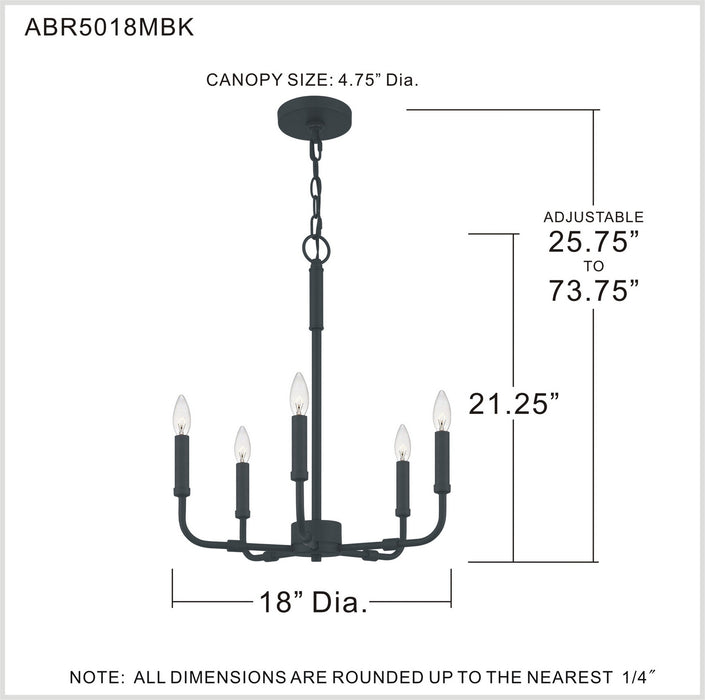 Five Light Chandelier from the Abner collection in Matte Black finish