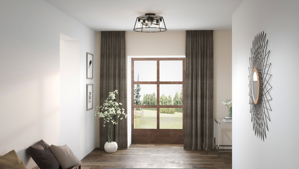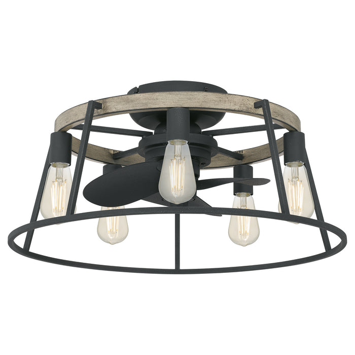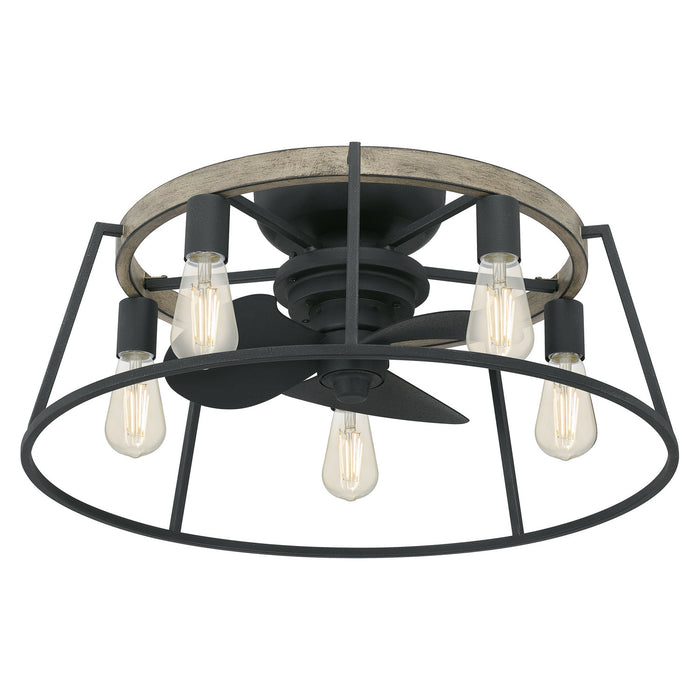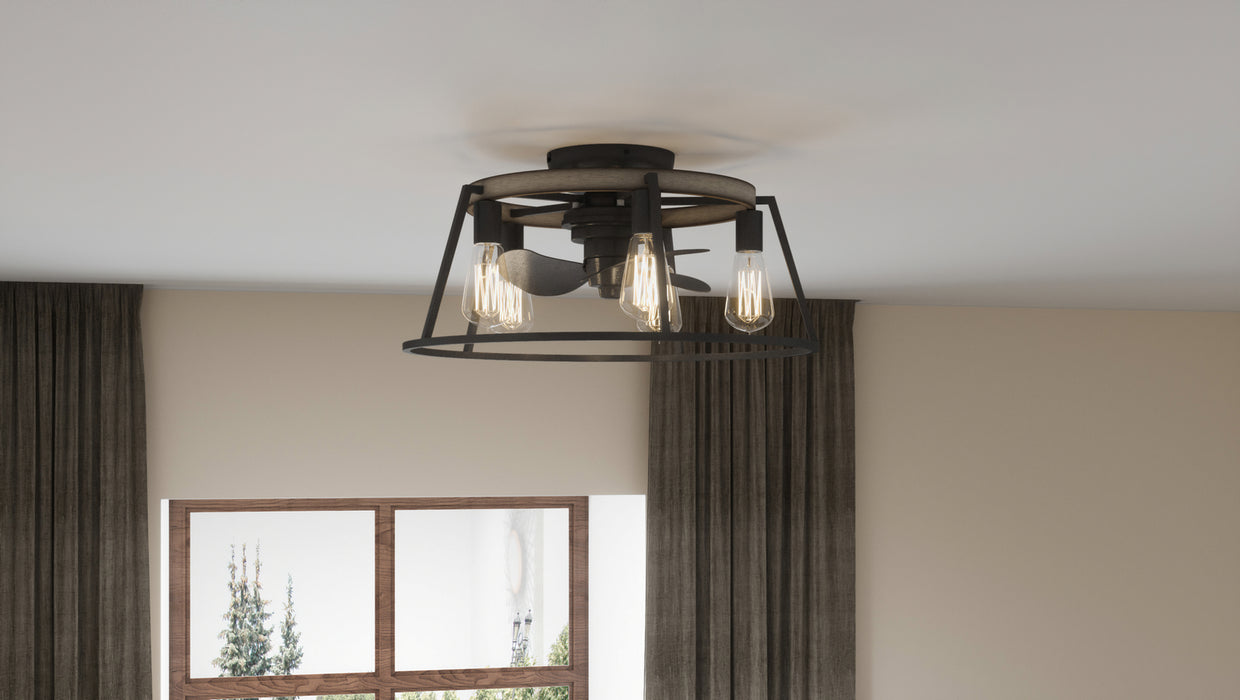 Form meets ultimate function. The Brockton fandelier is a contemporary update to rustic style with seeded glass shades, Edison-style interior bulbs, and a vintage-inspired fan within the circular canopy. Cast abundant light and refreshing air in a living or dining room, or even an outdoor space. Rated for use outdoors, this piece also features a reversible, three-speed motor to meet your cooling needs.