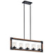 Warm and welcoming tones give the Marimount(TM) 5 light linear chandelier a vintage feel. The wood-look structure offers weathered style in a rich Auburn finish, framed in Black metal. Clear glass shades assure the light shines through.