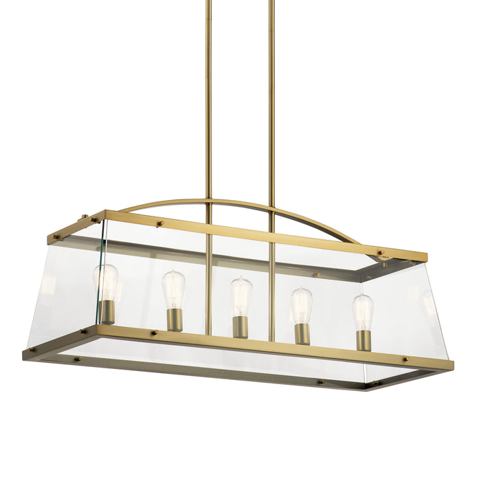 Five Light Linear Chandelier from the Darton collection in Brushed Natural Brass finish
