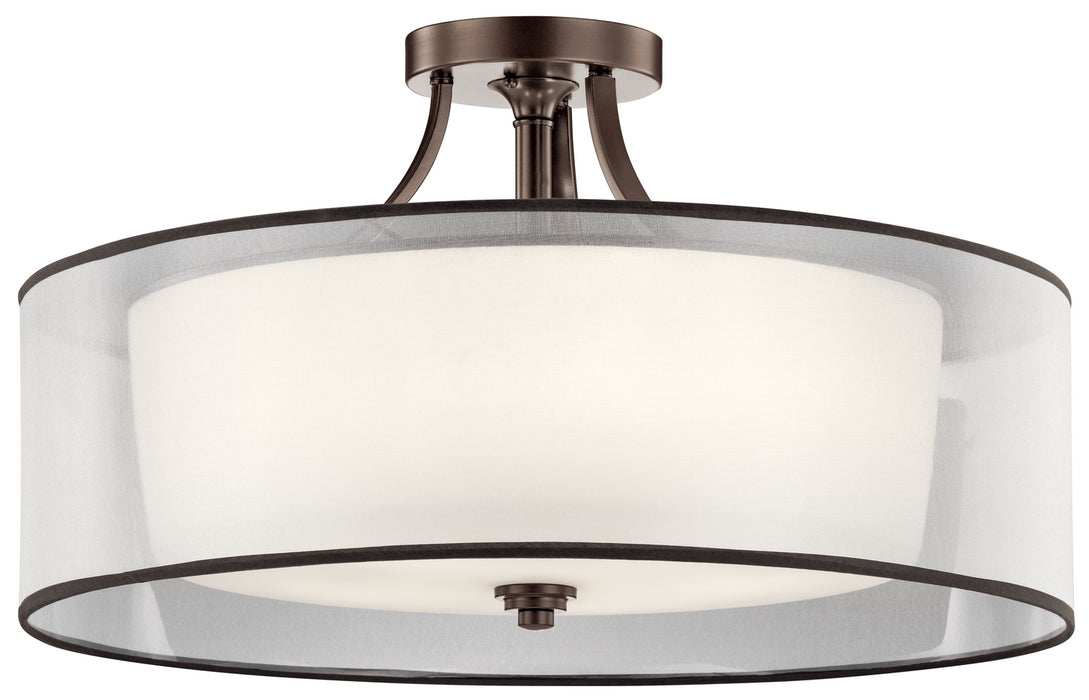 Clean lines and classic styling set this 5 light semi flush ceiling fixture apart. Its Mission Bronze(TM) finish, Light Umber Translucent shade and Satin Etched Glass combine to create a tasteful accent fitting for any space in your home.