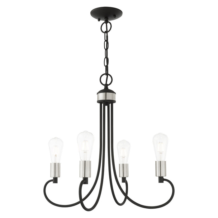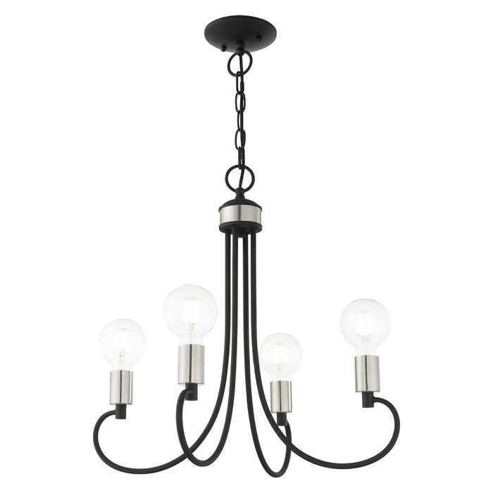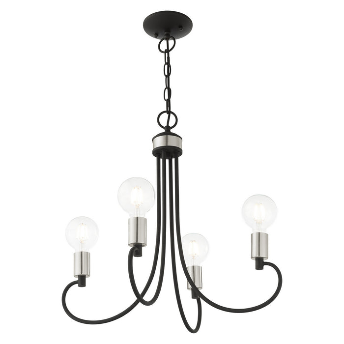 Four Light Chandelier from the Bari collection in Black with Brushed Nickel Accents finish