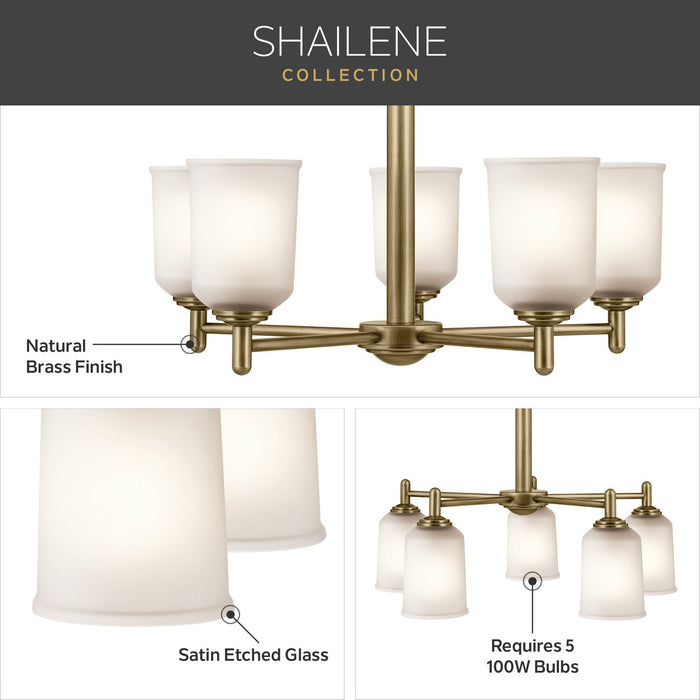 Clean lines. Simple detailing. Soft elements. Never has a subtle look made such an impact than with the Shailene 5-light chandelier. An ideal addition to updated traditional environments, Shailene's clear glass offers a refined touch and classic feel that creates a beautiful, ambient lighting. Plus, it's removable for ease of cleaning and replacement.
