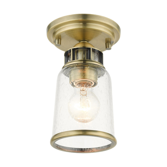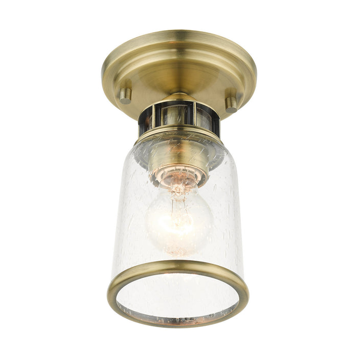 One Light Flush Mount from the Lawrenceville collection in Antique Brass finish