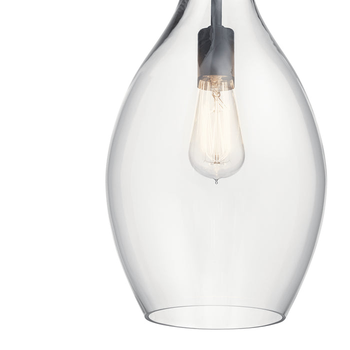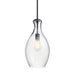The Everly(TM) 17.75in. one light hour glass shaped pendant comes with a curved, glass blown shade featuring clear glass and a Black finish for a simple and elegant look. The Everly`s versatile design coordinates with a variety of styles and can be used singularly, in multiples or arranged at varying heights to elevate the room.