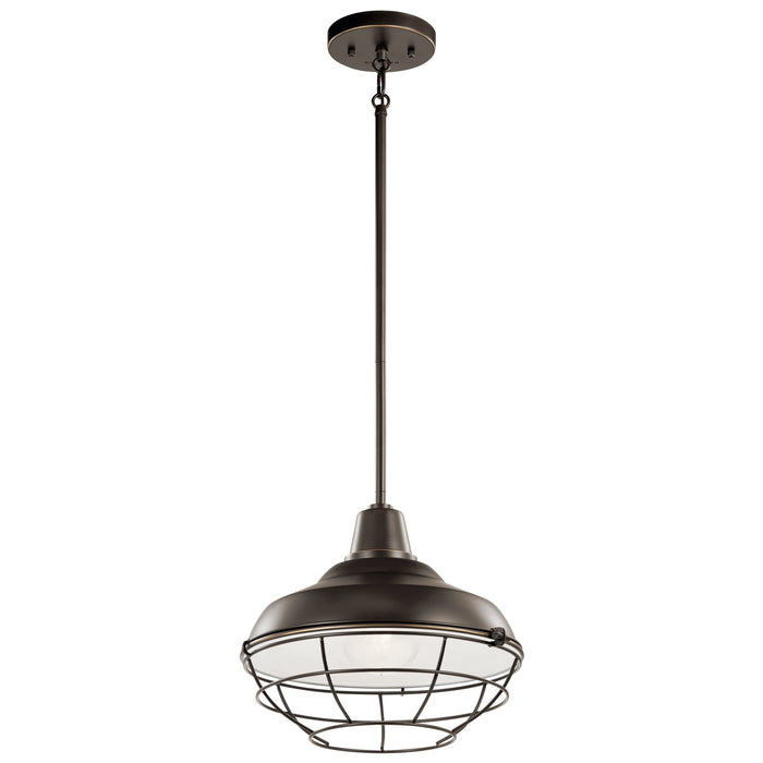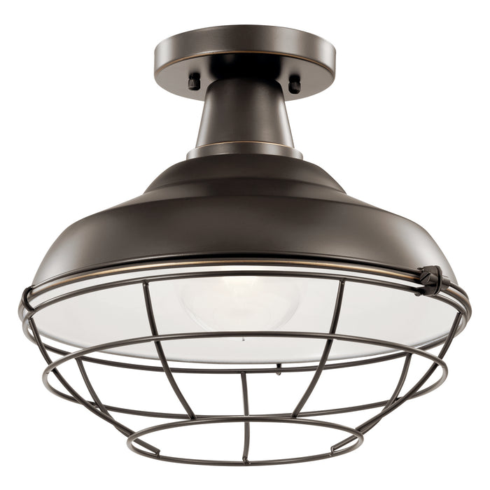 The caged design of the Pier 12 inch 1 light outdoor convertible pendant/flush mount in Olde Bronze offers the vintage outdoorsy look, while the bright white interior enhances and reflects the light for essential nighttime illumination.