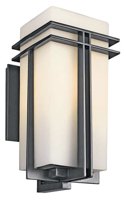 This 1 light wall lantern from the Tremillo(TM) collection offers a smooth, clean profile. Double lines of Black finish form sleek perpendiculars that contrast well with the pleasant ambience of Satin Etched Cased Opal Glass. This design will mark any walkway or porch with sleek sophistication and well-balanced grandeur.