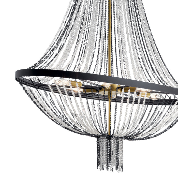 The Alexia 39.5in. 5 light foyer chandelier features a lively updated classic look with its crystal beads, Textured Black and mixed finishes. A perfect addition in several aesthetic environments, including traditional and modern.