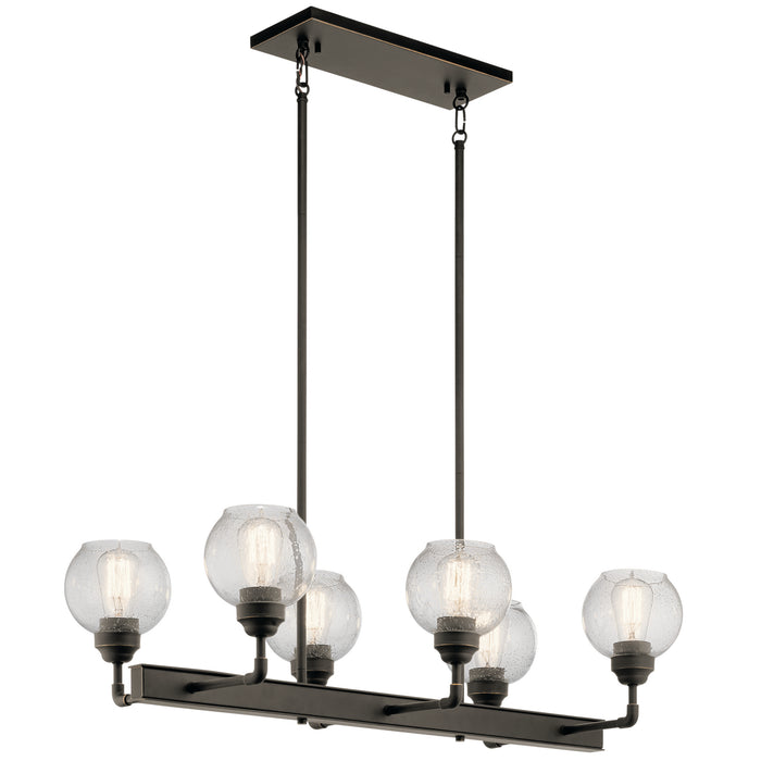 This Niles Olde Bronze 6 light linear chandelier`s globe style is reminiscent of fixtures found in historic metropolitan buildings, icons of the industrial era. Niles modernizes the look with clean lines for a look that works in any home.