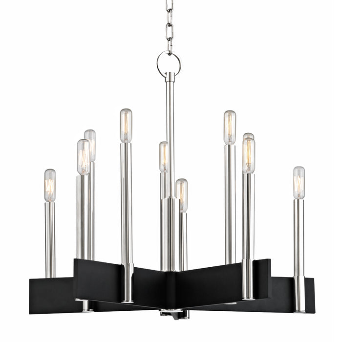 Ten Light Chandelier from the Abrams collection in Polished Nickel finish