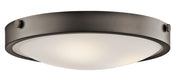 This versatile 3 light flush mounted ceiling fixture features a warm, Olde Bronze finish and Stain Etched White Glass that will effortlessly highlight any space in your home.