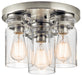 Brinley(TM) 11.75in. 3 light flush mount features a modern vintage look with its Brushed Nickel finish and clear glass. Inspired by mason jars, the Brinley(TM) Flush Mount works in several aesthetic environments, including modern vintage and transitional.