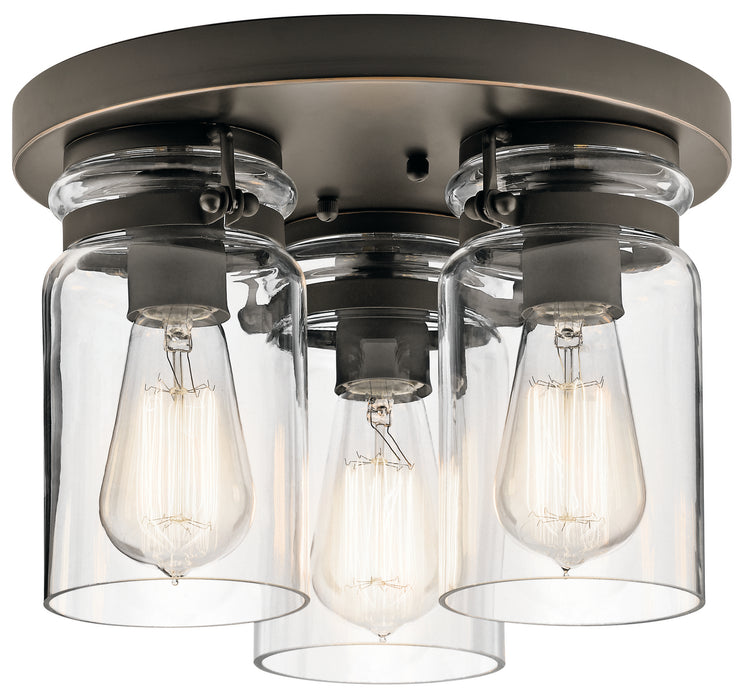 Brinley(TM) 11.75in. 3 light flush mount features a modern vintage look with its Olde Bronze(R) finish and clear glass. Inspired by mason jars, the Brinley(TM) Flush Mount works in several aesthetic environments, including modern vintage and transitional.